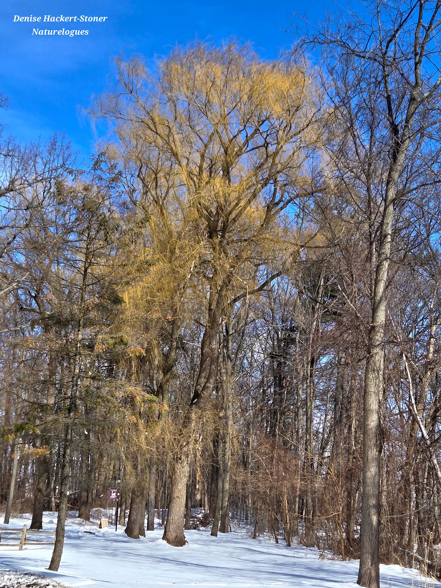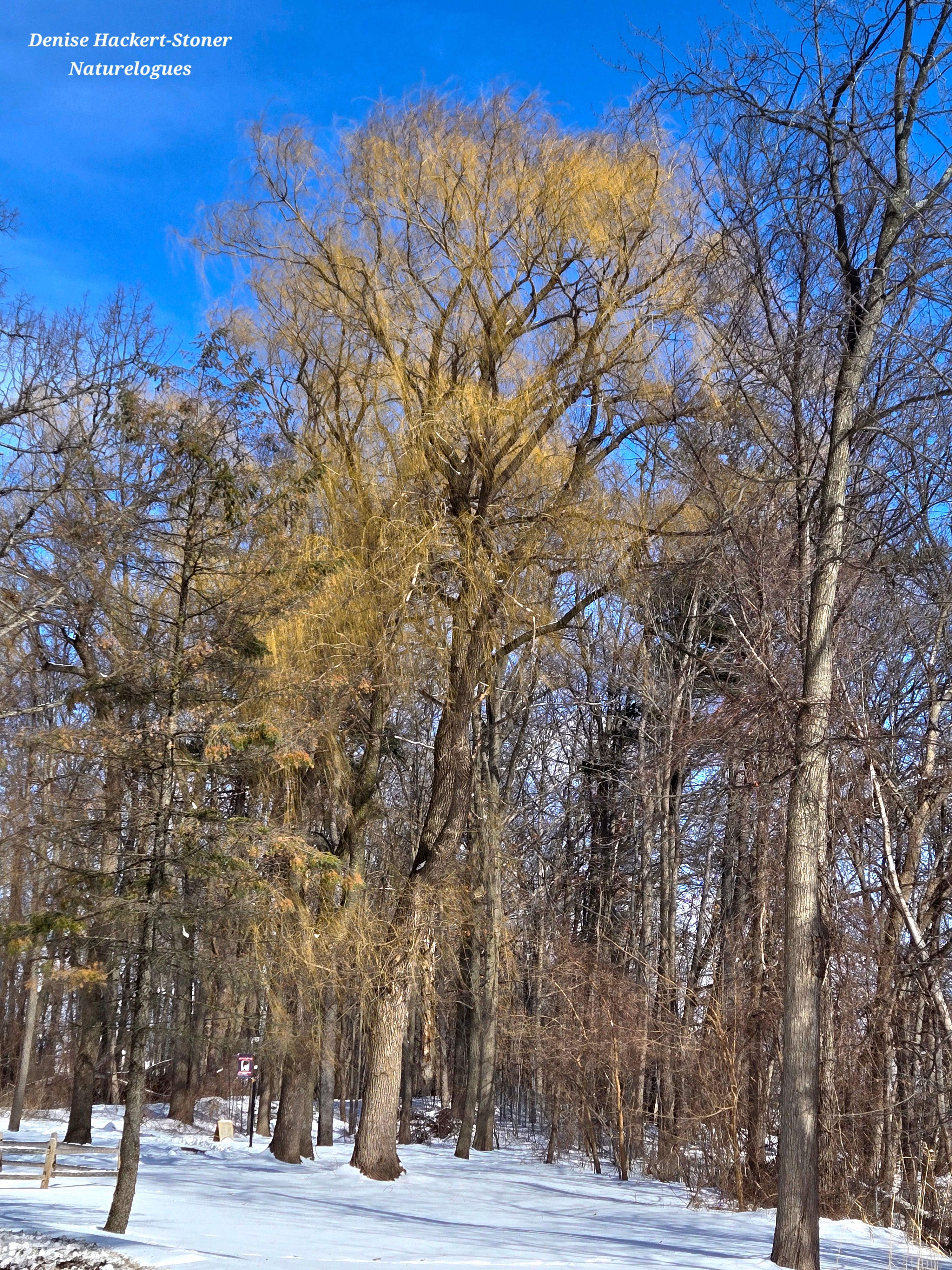 For us humans, the willow offers a different kind of hope. Robert Frost tells us that "nature's first green is gold." The willow offers that gold, and promises the hope of green after months of darkness and cold.